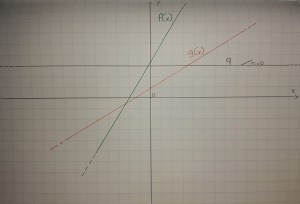 Ipotizziamo che f(x) e g(x) abbiano lo stesso grado polinomiale, ovvero, secondo un caso classico, siano due equazioni di rette generiche, con inclinazione non nulla ed intersezione con l’asse y: il loro rapporto, graficamente, in termini infinitesimi, corrisponderà ad un valore numerico puntuale, identificato da una retta orizzontale y = q. Tale retta, avendo inclinazione nulla, avrà un coefficiente angolare uguale a 0, dunque una derivata nulla.