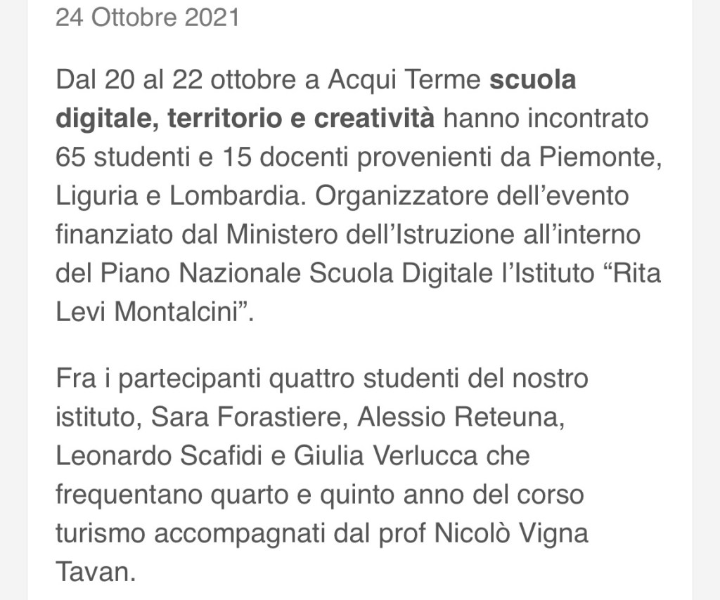 Hackathon Days in Acqui Terme, 24/10/2021 Condividi: Condividi su X (Si apre in una nuova finestra) X Condividi su Facebook (Si apre in una nuova finestra) Facebook Mi piace Caricamento...