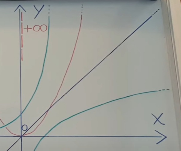 Let us assume the result + infinity of the calculation of the limit for x that tends to + oo, that of an imaginary function that moves perfectly asymptotically towards the y axis. If the result of the calculation of the limit for x which tends to + infinity of the exponential function described above,