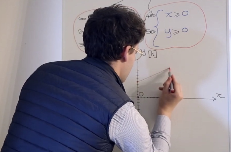 Il professor Nicolò Vignatavan, docente di scienze matematiche applicate, espone i punti chiave per risolvere un esercizio generico di programmazione lineare in due variabili