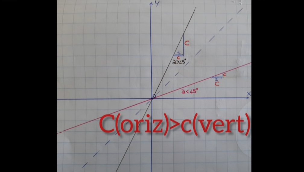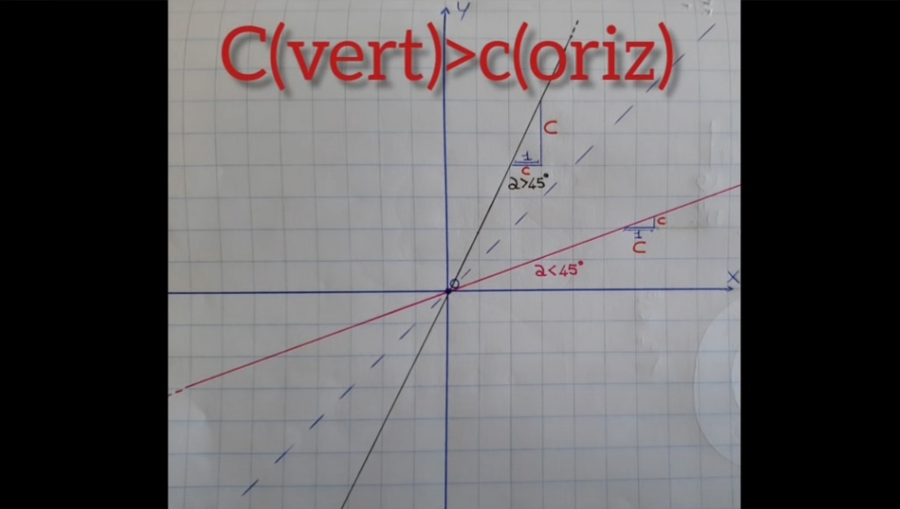Inteso “a” come l’angolo generato dall’intersezione della retta con l’asse delle ascisse, nel caso di a>45°, il triangolo rettangolo sarà scaleno ed avrà il cateto orizzontale minore e cateto verticale maggiore