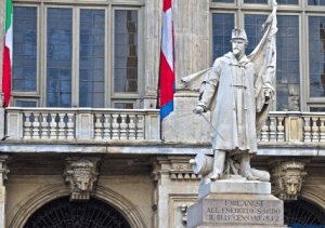 Spostandoci a piedi, molto velocemente raggiungiamo piazza Carignano, nella quale, dinnanzi all’omonimo teatro, troviamo una scultura che, indiscutibilmente, ci colpisce per maestosità ed eleganza: è la statua di Vincenzo Gioberti.