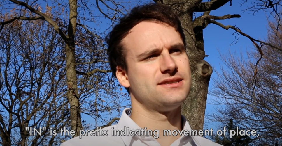 “IN” is the prefix indicating movement of place, direction, projection and vector grammatically, otherwise expressed as “from -> to”.